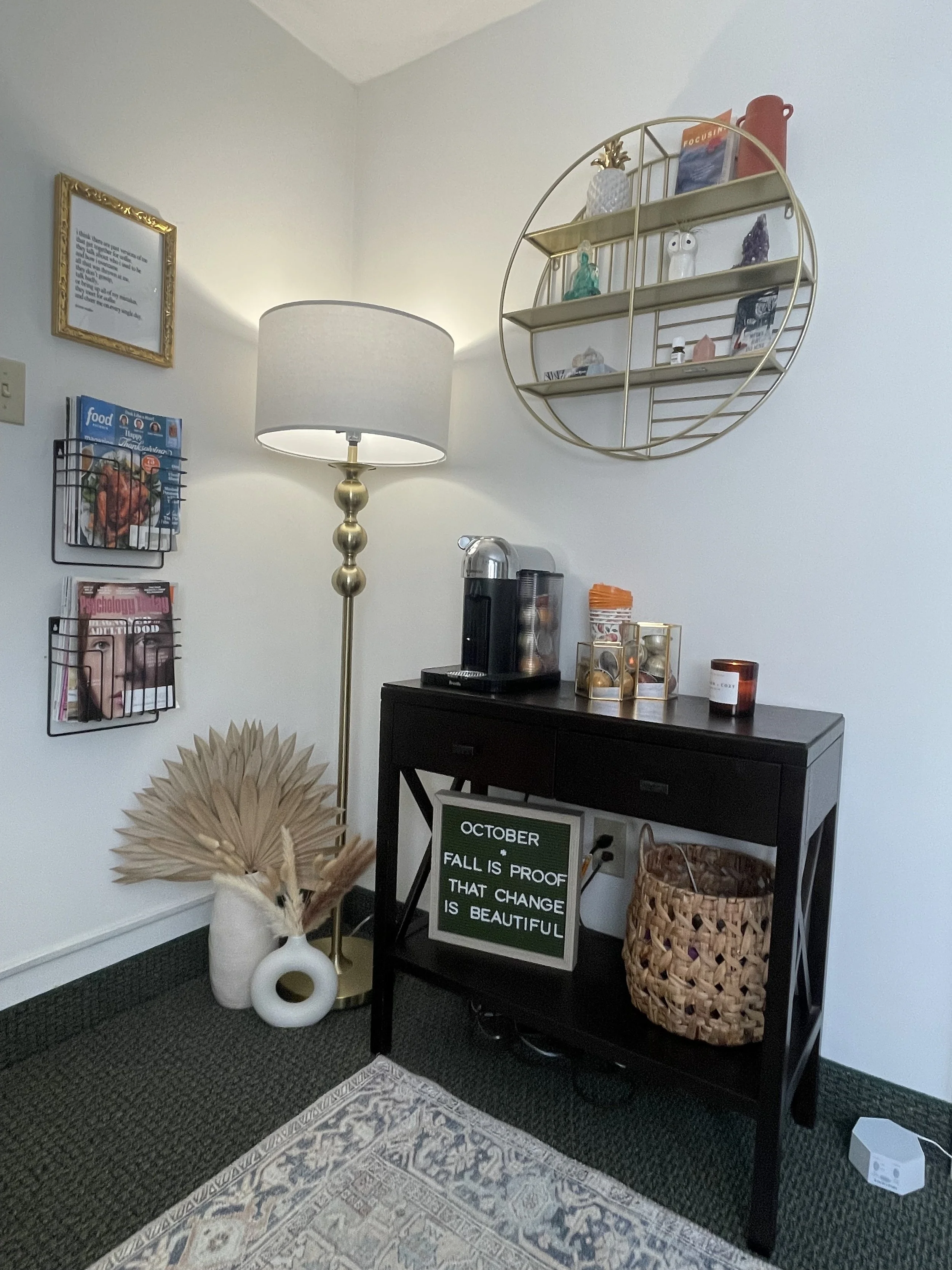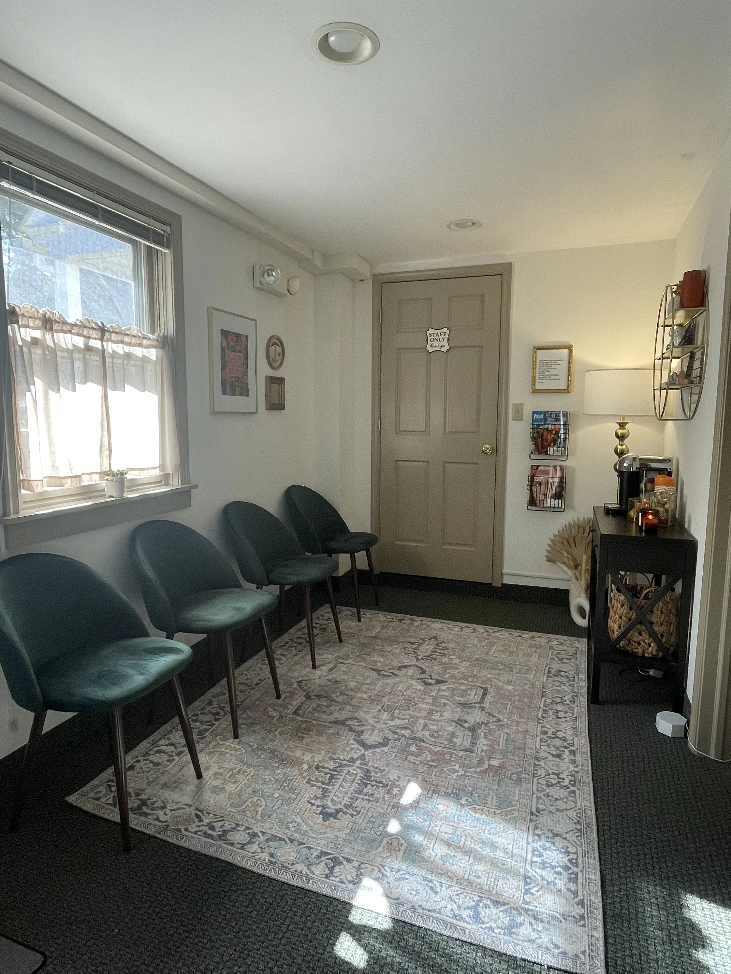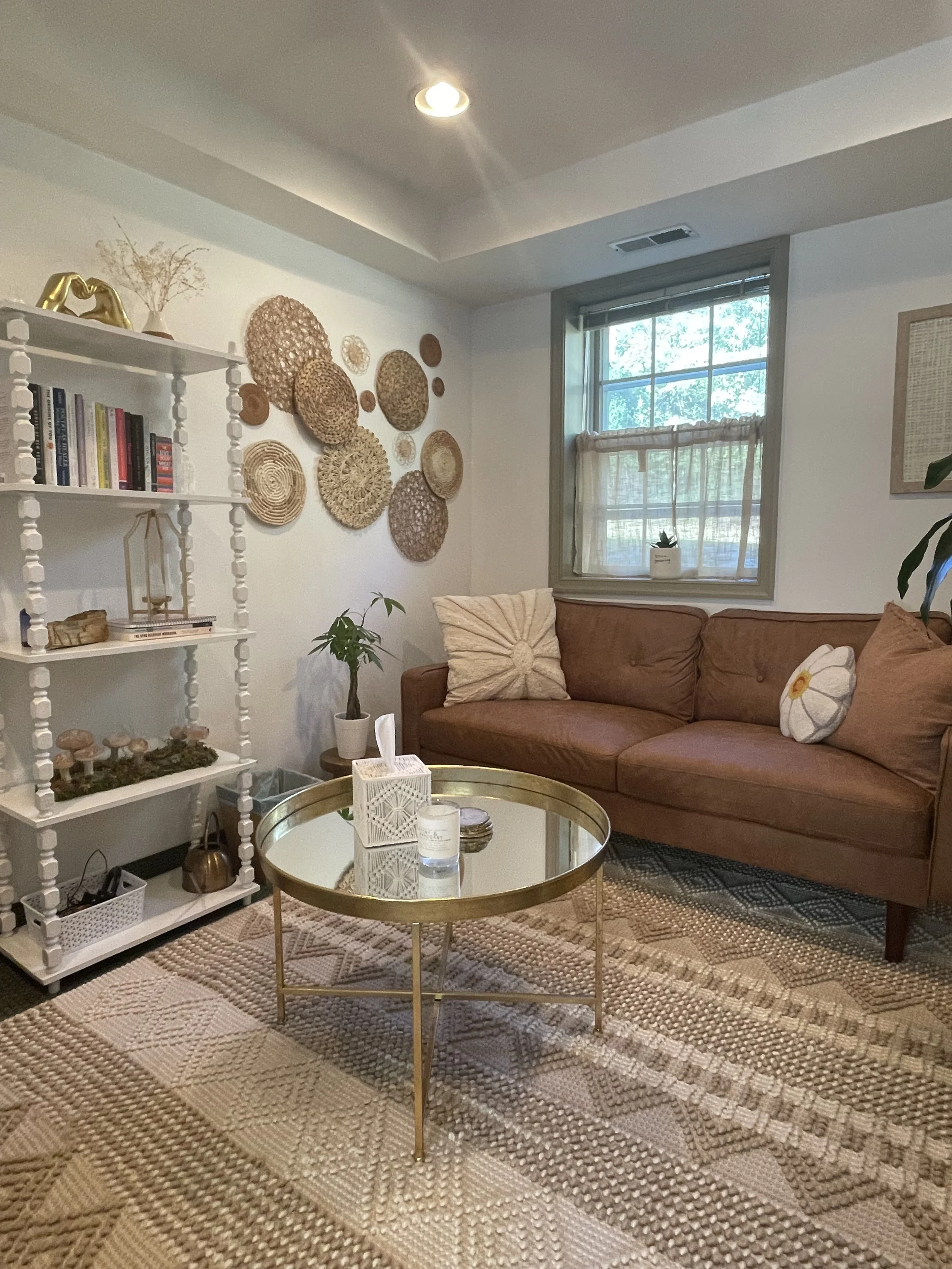 My office in Exton, PA is designed to be cozy and healing. I chose a beautiful farmhouse from the 1880’s due to the charm, privacy and comfort it offers. Therapy can be uncomfortable at times, and having a comfortable space helps.